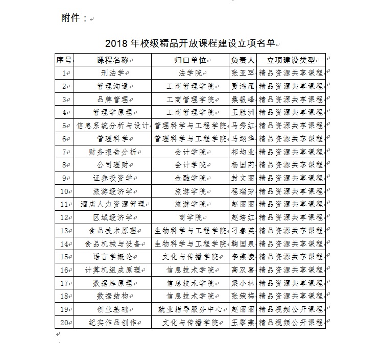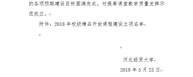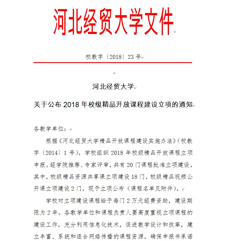 河北经贸大学关于公布2018年校级精品开放课程建设立项的通知