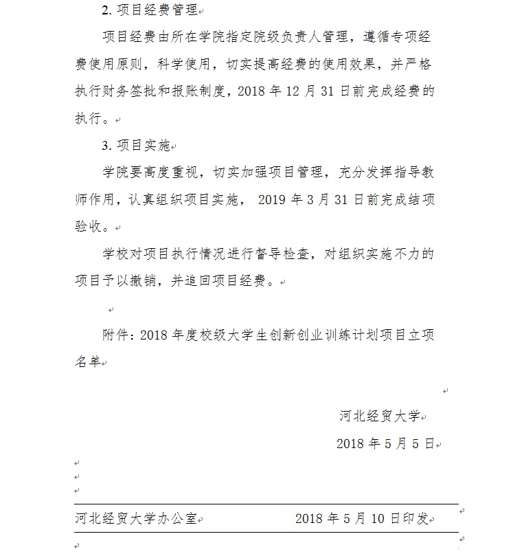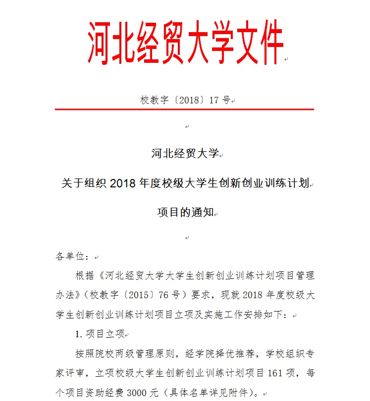附件:河北经贸大学2018校级大学生创新创业训练计划项目立项名单